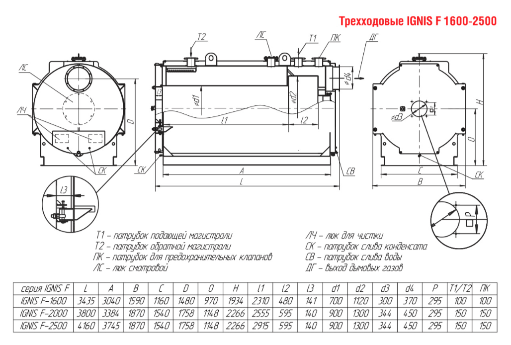 Технические характеристики водогрейного трёхходового котла ARCUS IGNIS F-2500